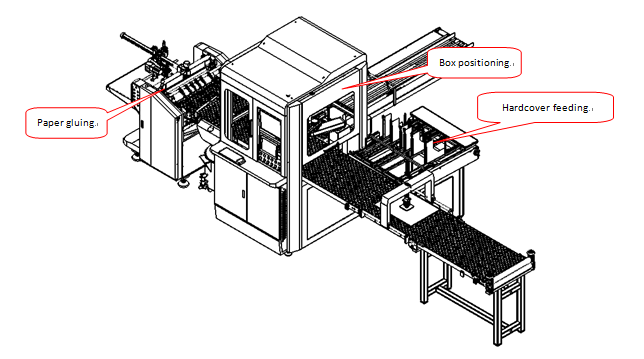 Automatic Case Making Machine For Game Board, Hardcover, Moon Cake Box Sheet Etc. This machine is also called as gluing and spotter machine. It can finish paper gluing and pasting case/ hardcover on the glued paper automatically, which is widely used for rigid box making, book cover making, paper lining and even album, game board making.